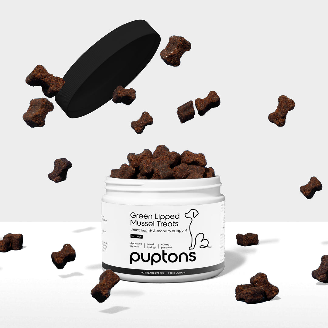 The Green Lipped Mussel found in Puptons’ delicious joint support treats has been sourced entirely from green shelled mussels native to the shores of New Zealand. These mussels are highly prized for their exceptional nutritional qualities and they contain an array of beneficial vitamins, minerals, omega 3 fatty acids, amino acids and all-important glycoproteins.