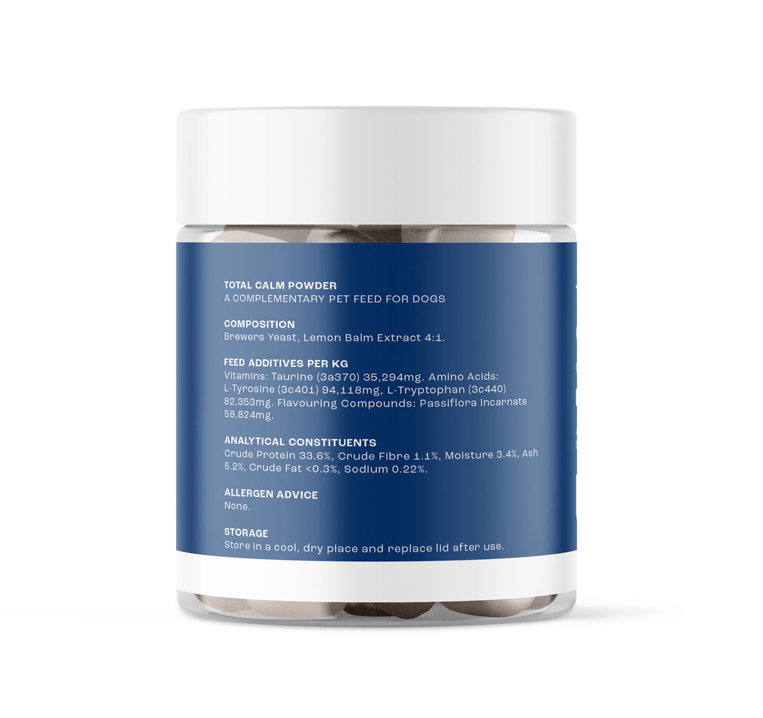 Total Calm Powder wird im Vereinigten Königreich nach den höchsten Qualitäts- und Reinheitsstandards hergestellt und formuliert. Wir wissen, wie wichtig es ist, dass unsere Produkte nicht nur den täglichen Bedarf Ihres Welpen decken, sondern auch 100 % sicher sind.
