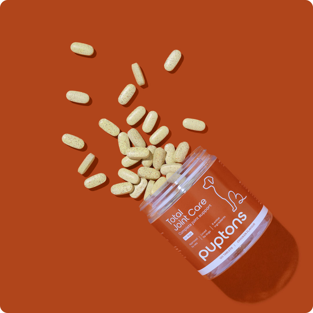 Total Joint Care enthält Hühneraroma und die überwiegende Mehrheit der Rückmeldungen, die wir erhalten, ist, dass Hunde es gerne als Tablette mit der Hand oder als Pulver mit dem Futter verzehren – weshalb wir Total Joint Care in beiden Formaten anbieten.