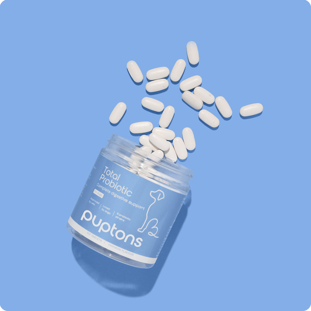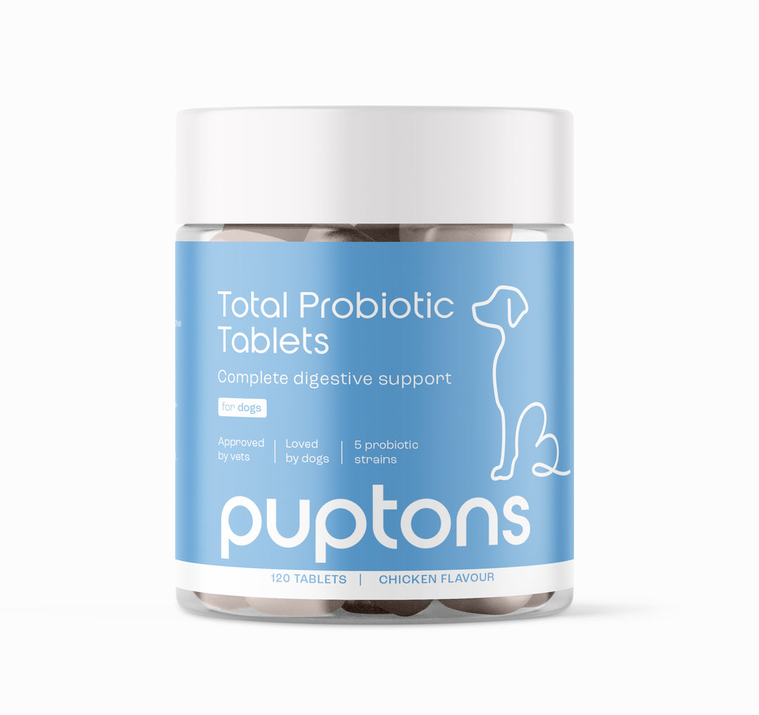 Total Probiotic ist eine schmackhafte Tablette mit Hühnergeschmack, die zur Bekämpfung unerwünschter Verdauungssymptome wie Durchfall, Blähungen und Blähungen entwickelt wurde – ganz zu schweigen davon, dass sie zur allgemeinen Gesundheit Ihres Hundes beiträgt.